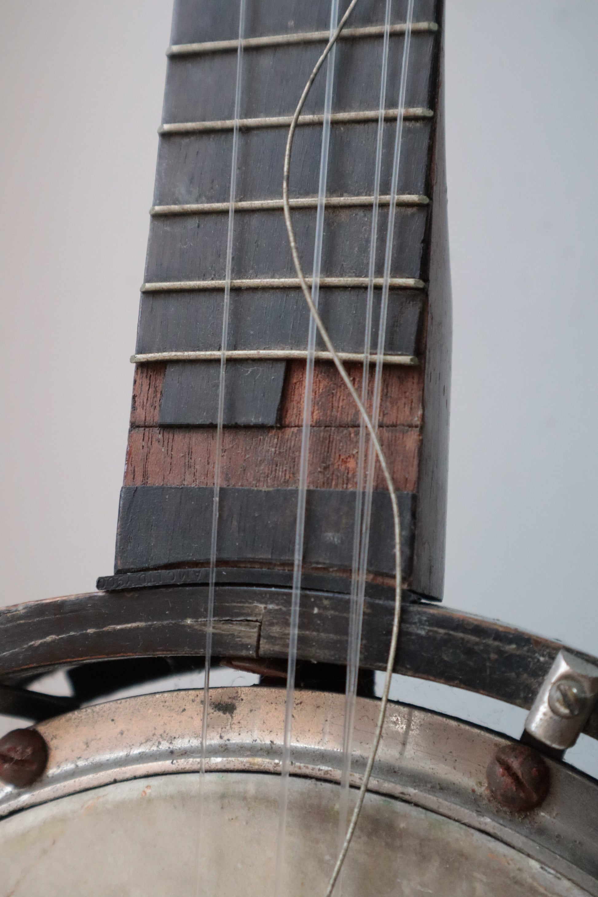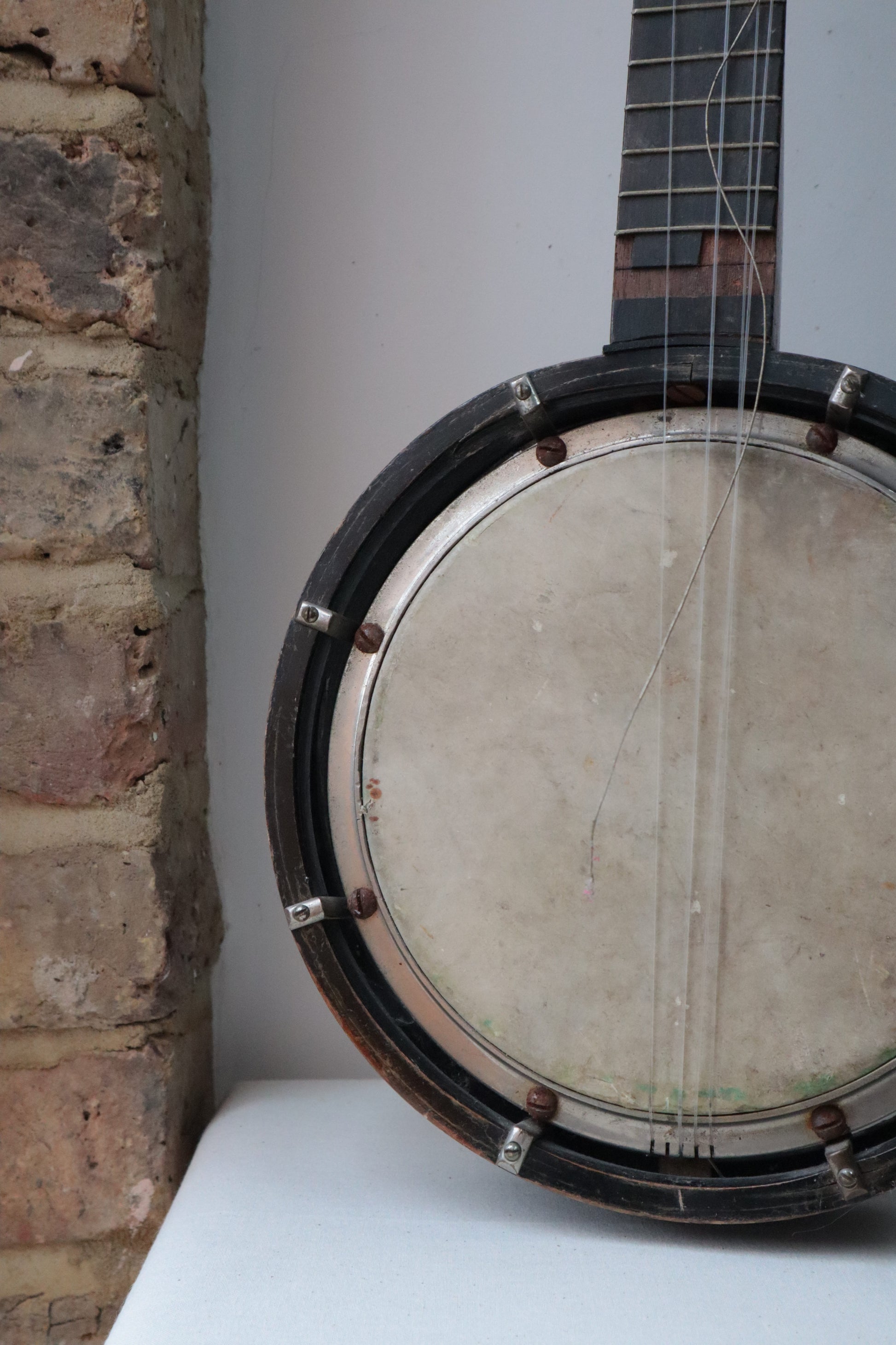 A unique distressed banjo which will bring an old world charm to any party decoration. A/F. As this is a vintage piece there is age related wear.