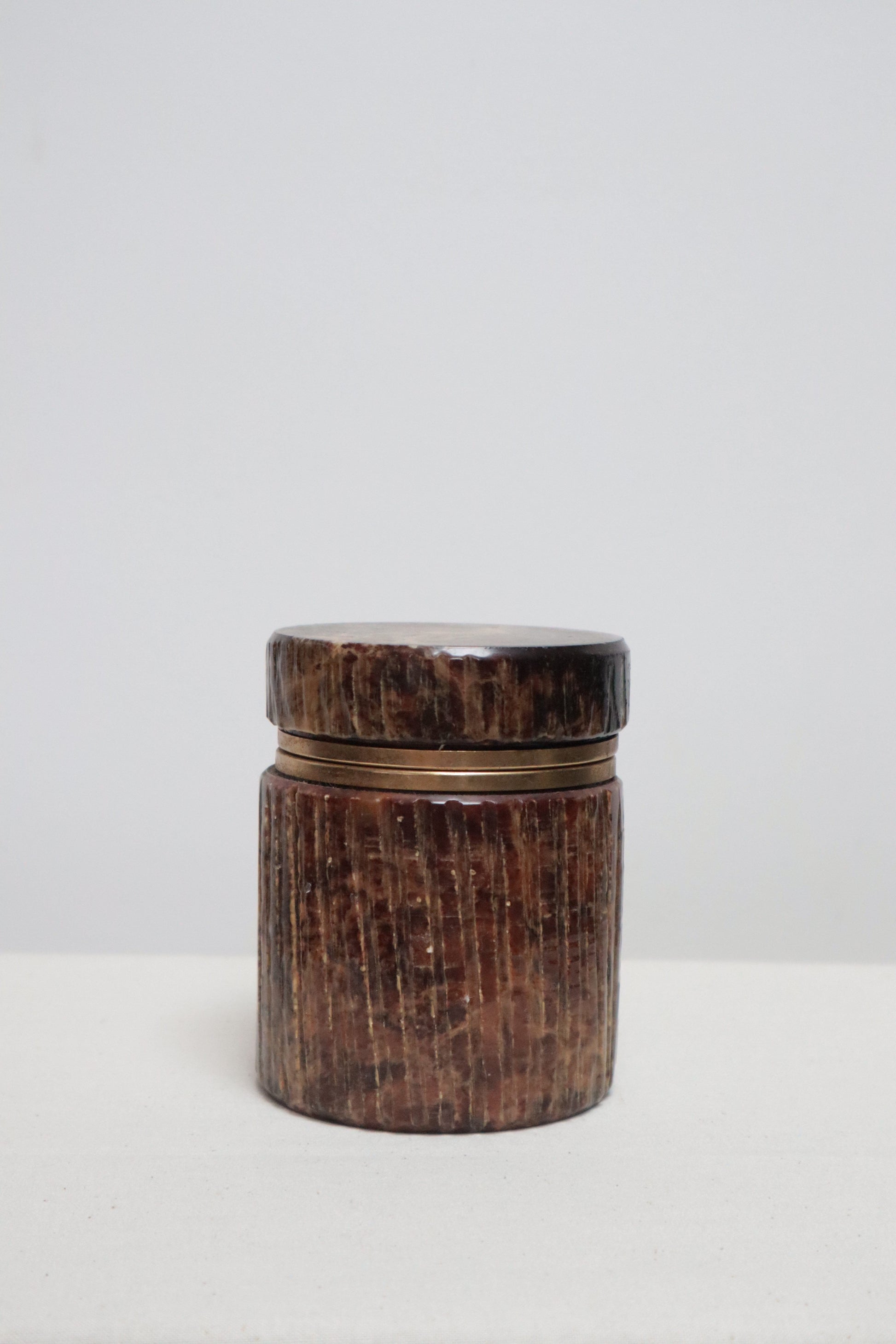 A marble lidded pot with beautiful natural patterns. As this is a vintage piece there is age related wear.