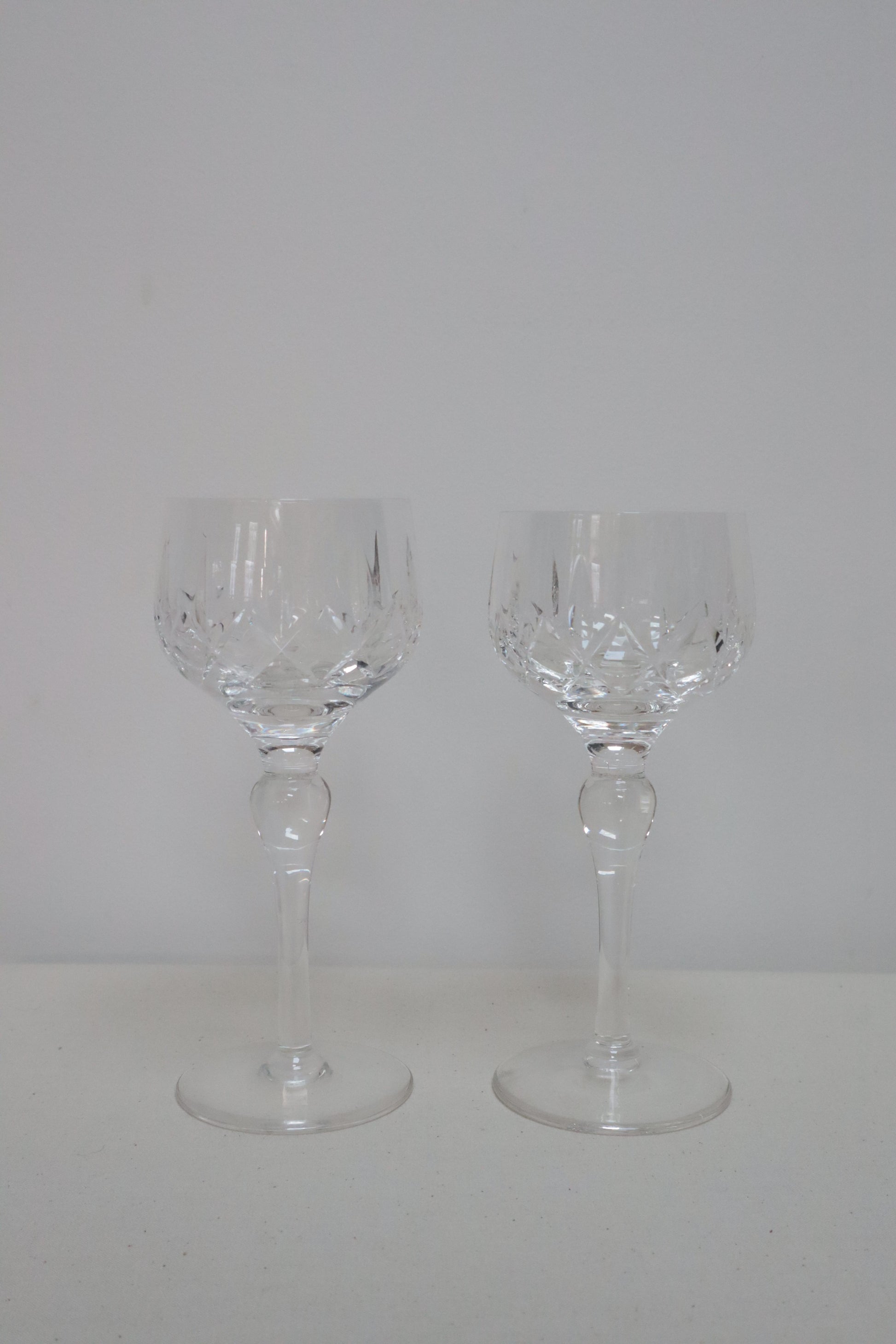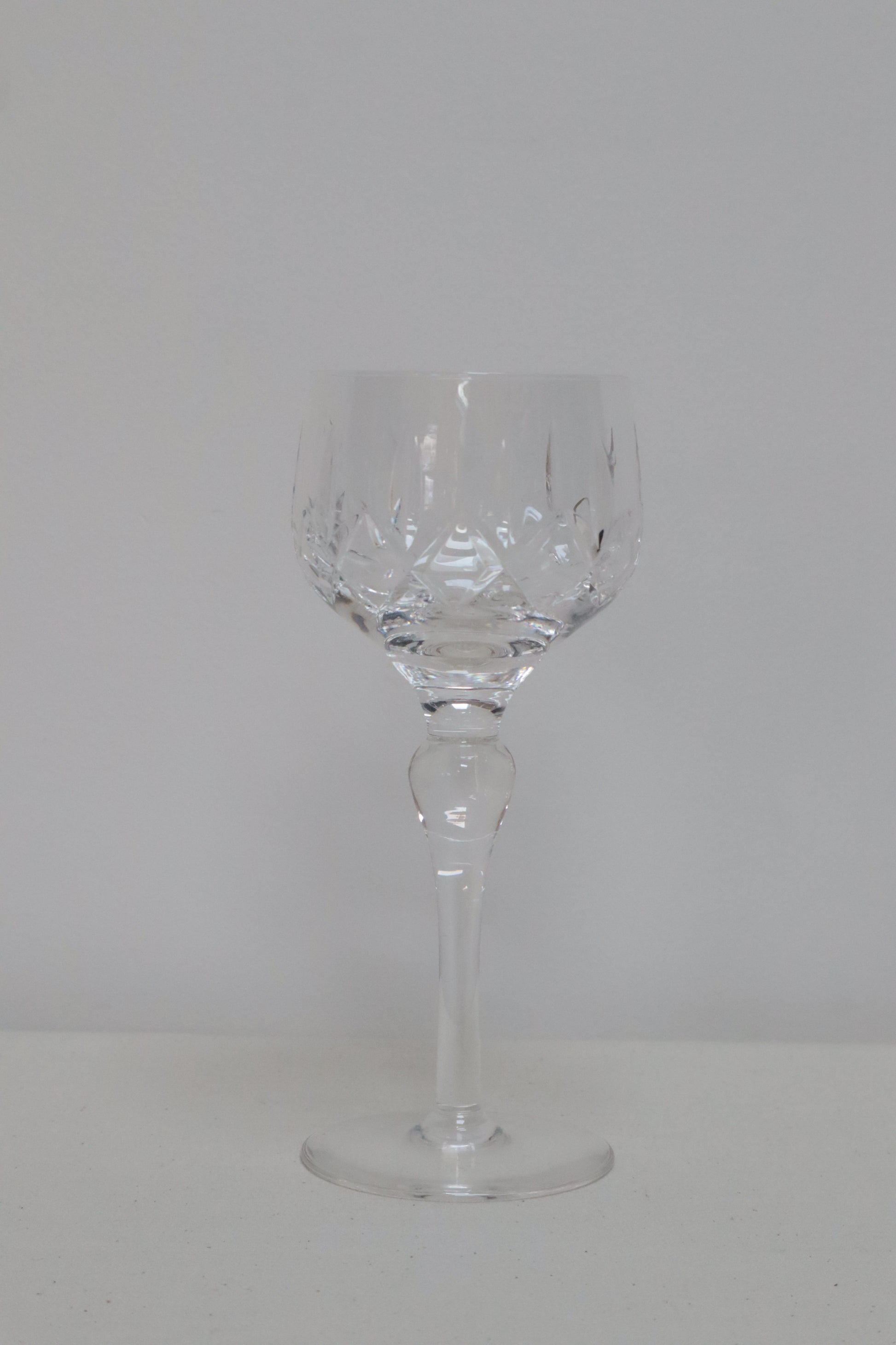 An elegant set of cut glass wine glasses. As this is a vintage piece there is age related wear.